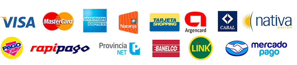 Con Tarjeta de crédito, débito, mercado pago, rapipago, pago fácil o transferencia bancaria.